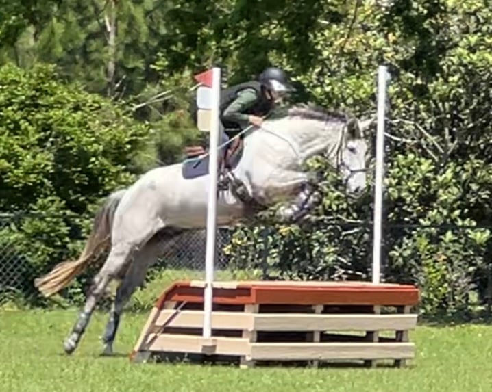 5yo grey 16.3hd unraced Tb gelding by Mylute and out of a Holy Bull mare. I’ve had Dobby since a yearling, great mind, fantastic mover. Green but fancy enough to do hunters, Eq, or dressage or eventing. Has a lead change. Free jumped 1.60 easily. Good for talented young rider or AA that wants to bring a horse up the levels. Has scored in the 20’s at Beginner Novice. He gets tons of compliments for his fantastic demeanor. Easy keeper, beautiful feet(barefoot). Super sweet personality. Currently lives out in gelding group but also happy on a stall. I don’t mind keeping this one and training up the levels. He has the best big ears. 40k